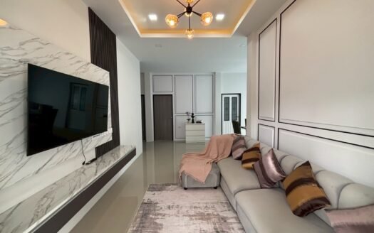 This house is a 2-storey house, newly decorated, beautifully decorated, luxurious, modern and is a quiet village, family-friendly and friendly, with 24-hour security. All furniture is new, suitable for renting as a residence and not far from the market and shopping areas, including various restaurants, not far from Mabprachan Lake, only 10 minutes and into Pattaya City, only 15 minutes from the hospital, another interesting thing in this village with 5 Bedrooms 4 Bathrooms