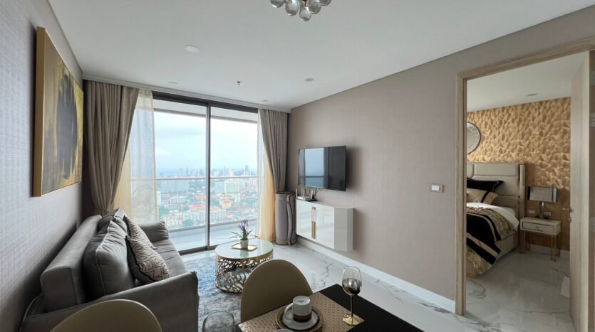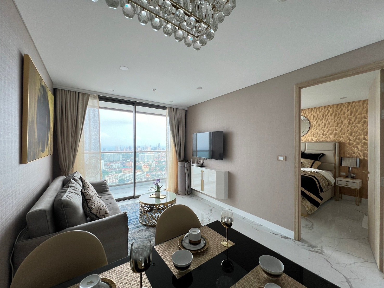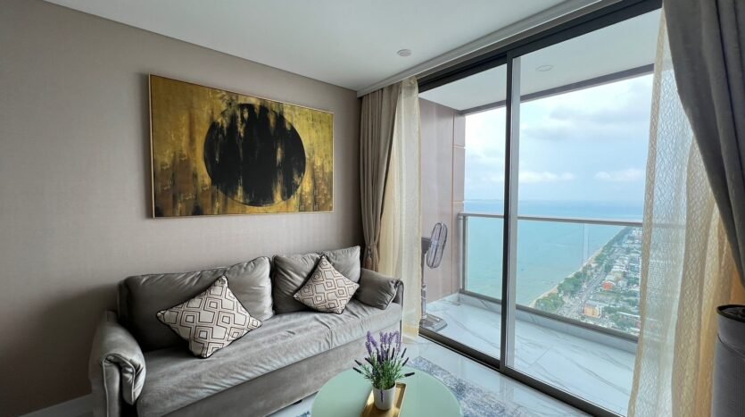 Copacabana Beach Jomtien. Condo high-rise has 59 floors in Jomtien, Pattaya, was completed in March 2022, consists of 1,644 units situated on beach road and Jomtien 2nd road, next to night market, on spacious best condo location. This is a modernly decorated condo with a restaurant and coffee shop. Every room has a sea view and is just a few minutes’ walk to Jomtien Beach. It is a convenient condo for traveling. There are many restaurants, coffee shops, bars, and massage parlors near the condo. This makes it another option for everyone’s vacation. This is 1 bedroom 1 bathroom. Floor 45th with Seaview. Fully furnished.