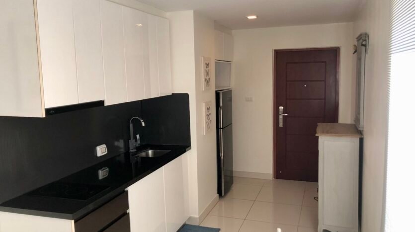 This is a quiet resort-style condo located on Pratumnak Hill betterween soi 4-5, close to Pattaya, Big Buddha Hill, and Pattaya Viewpoint. It is about 10 minutes from Jomtien Beach and about 10 minutes from Pattaya Beach. It is also 10 minutes from shopping malls and not far from Walking Street. The location is very good on Pratumnak Hill with many shops and restaurants. This room is on the 4th floor, with a view and a quiet place to relax. Recommended, don’t miss it. The project completed in 2012. It is a low-rise condominium, 2 buildings of 8 floors with 140 residential units.