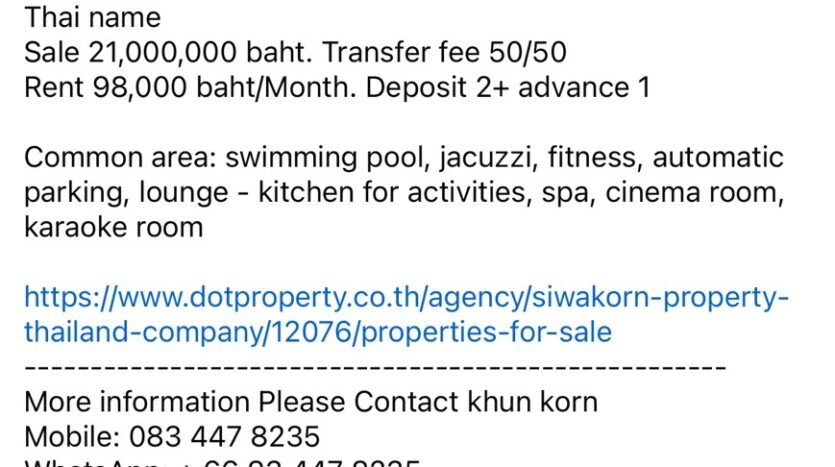 -Selling 21,000,000 baht. Transfer fee 50/50. Thai quota