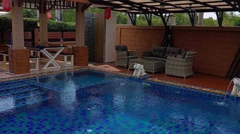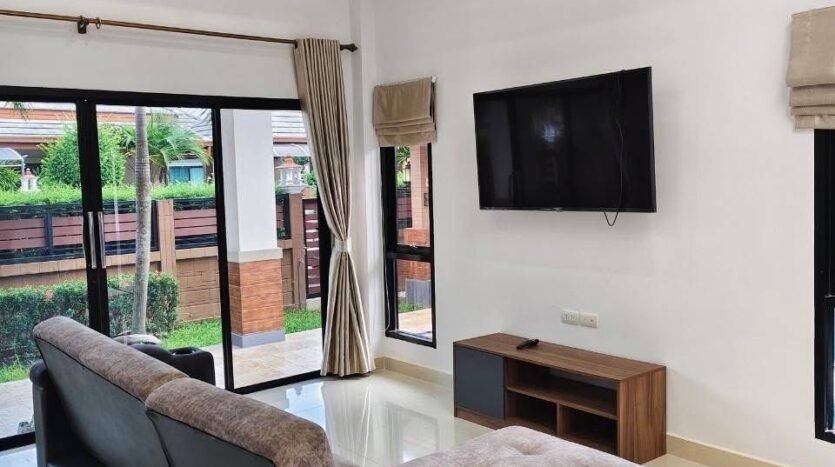 2 bedrooms, 1 partitioned room, 2 bathrooms. There is a sauna room next to the pool With electrical appliances, sofa, TV, refrigerator, microwave, air fryer, gas tank, bed, wardrobe, dining room.