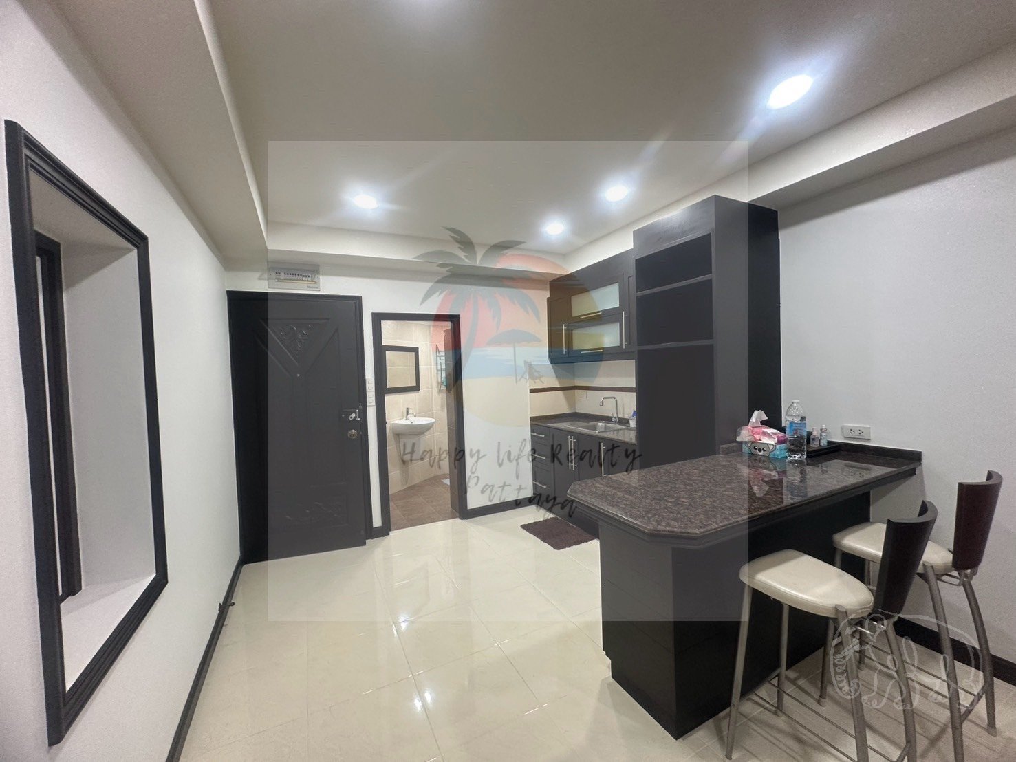 Condo next to Wongamat Beach just 1 minute you can come down to play in the water and walk on the sand is a very good location can walk the beach to Pattaya Center this beach is quite quiet and nice to live there are many restaurants and near shopping whether it is seafood or night market.