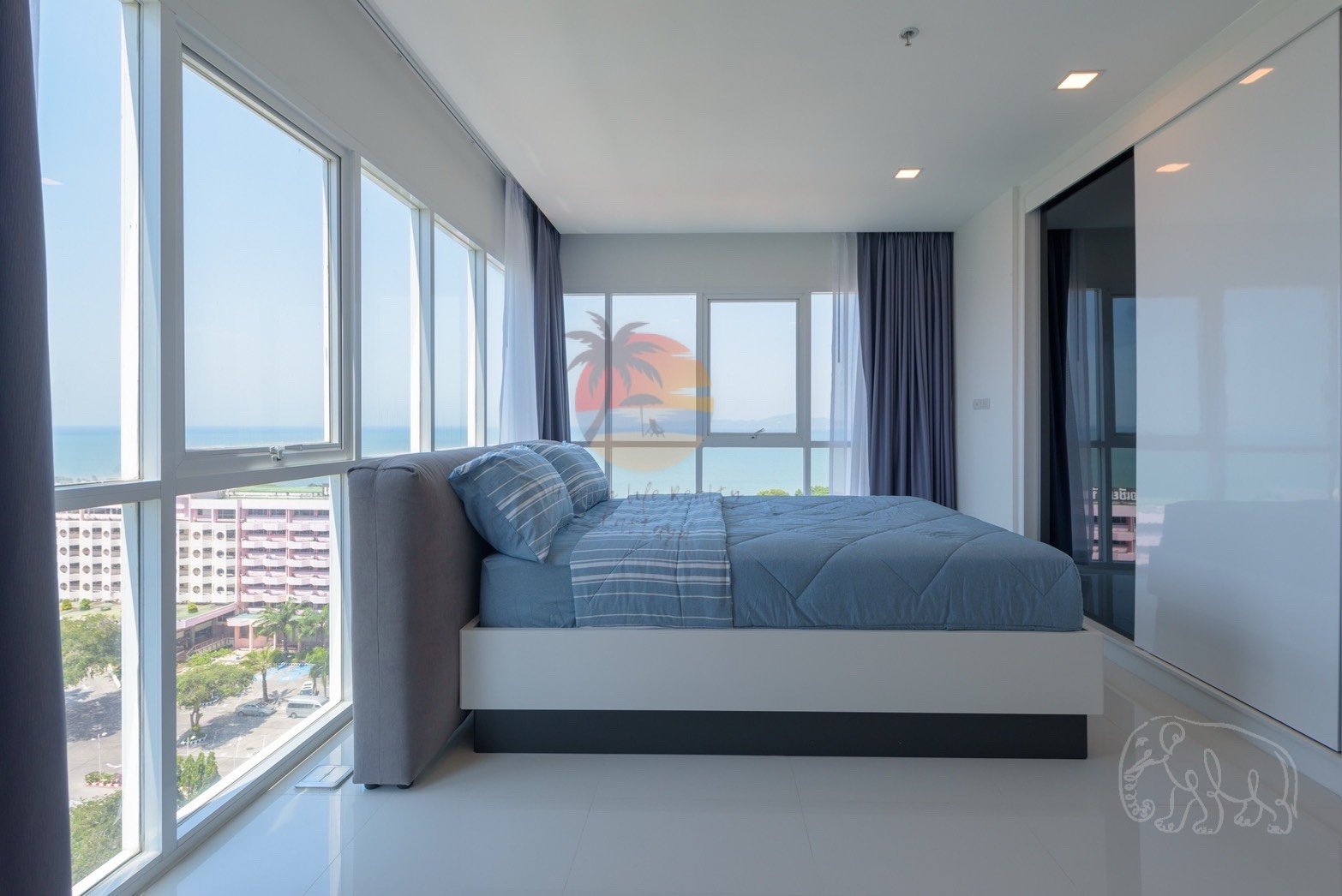 This condo is located just a short 5-minute walk from the beach. It’s a luxuriously decorated 1-bedroom, 1-bathroom unit on the 11th floor, a corner unit with stunning sea views from the living room, bedroom, and bathroom. This unit is highly recommended and will bring you joy every day.