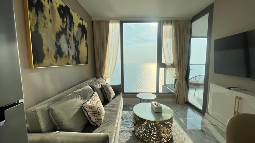 Copacabana Beach Jomtien is a condo project developed by Copacabana Beach Jomtien, Copacabana Beach Jomtien construction was completed in March 2022. Copacabana Beach Jomtien has 59 floors. The inspiration comes from Copacabana Beach, a world-class beach in Rio De Janeiro, Brazil. And this condo is a nice place to live because it’s right next to Jomtien Beach. Going anywhere is convenient. There are many shops and restaurants here, just a few minutes’ walk away. In the condo, there are monks who provide service and restaurants and coffee shops inside the pool. You can see the sea view, but the sunset, you can enjoy every day here. Don’t miss this room. This room 2 bedrooms 2 bathrooms, Floor 54th has a jacuzzi bathtub on the balcony. You can see the sunset every day. We’re believe that people will be happy when living here. The person you love.