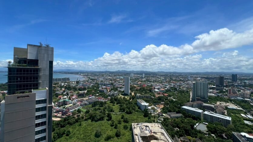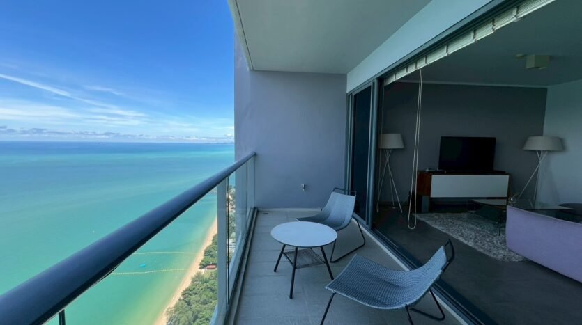This is a high-rise beachfront condo on Wongamat beach. It is surrounded by 4-5 star hotels and condos, as well as various restaurants. It is not far from the shopping mall, just a 5-minute drive away. The condo is full of trees, allowing fresh air to enter every day. You can also see the sunset every day from the balcony and the sea as well. This condo is not to be missed. The condo is on the 49th floor, offering city, sea and sunset views at the same time. Security is available 24 hours a day. Zire Wongamat is a freehold condominium consisting of two residential high rise towers of 37 and 54 storeys with approximately 450 condo un its across both towers. Zire Wongamat construction was completed in 2014.