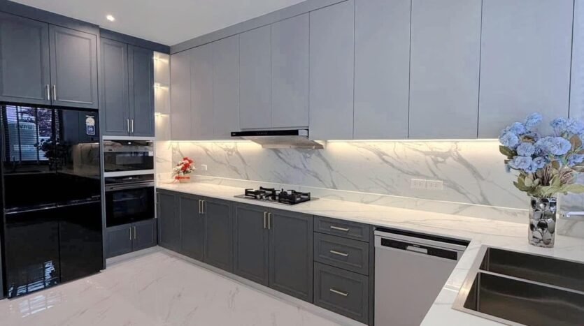 Spacious living room – designed to provide ample natural light. Spacious living space – connects indoor and outdoor spaces, allowing you to fully experience nature. There is an outdoor kitchen and a Thai kitchen available for your selection. Maid’s quarters or storage room available.