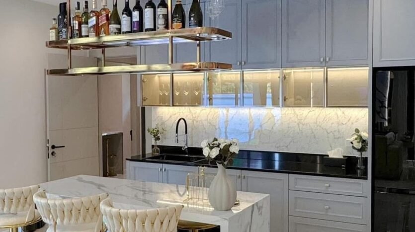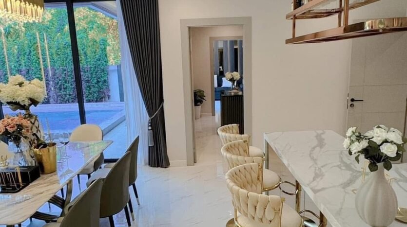 5 bathrooms for convenient privacy – luxurious and elegant décor / Bar area for relaxing at home. Large private swimming pool – mineral water system and a Jacuzzi area for relaxing, perfecting your vacation.