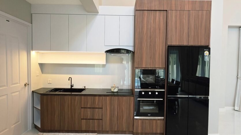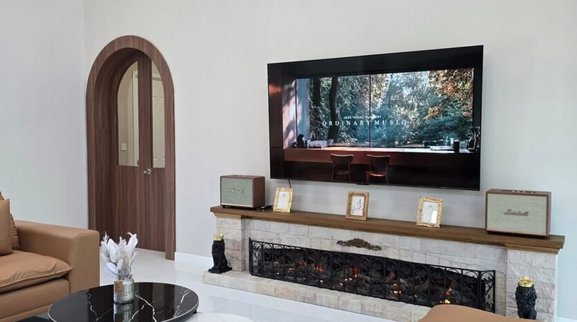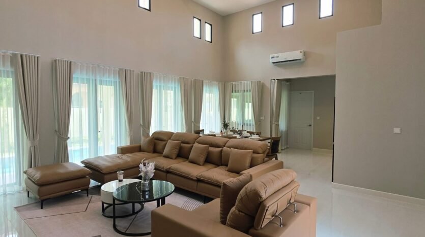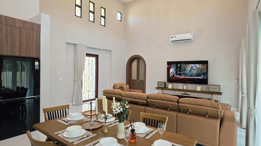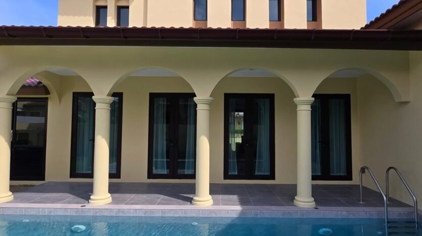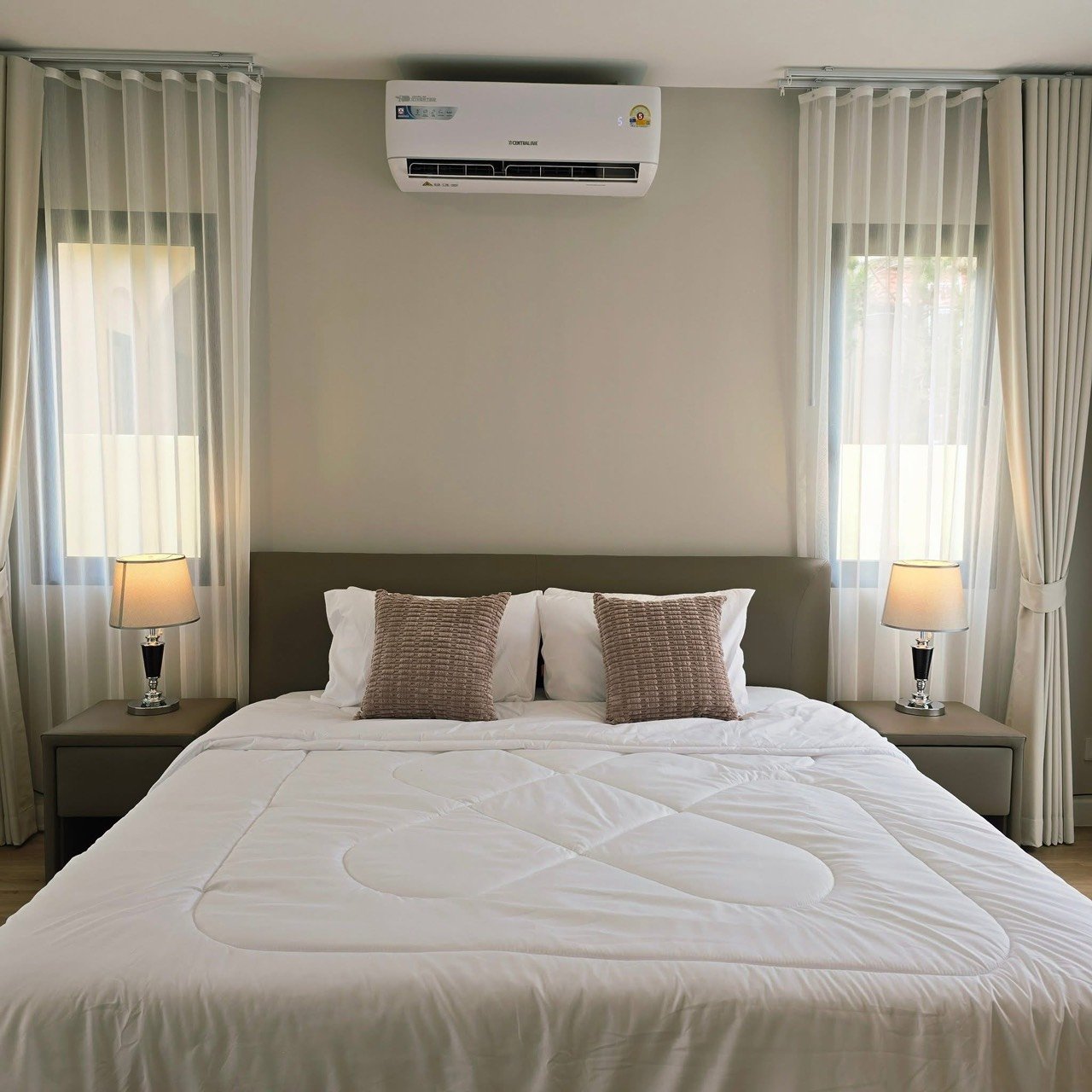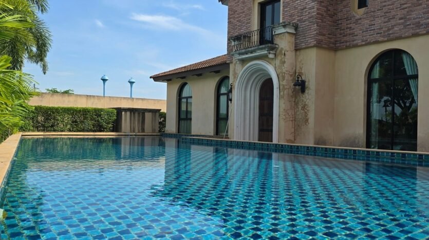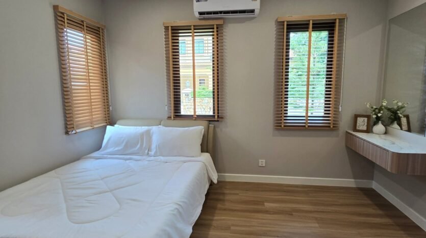 Chivani Pattaya pool villa, a luxurious Tuscan-style village nestled amidst lush trees, offering a Khao Yai atmosphere but close to the sea. Located on Sukhumvit Road, Good location, next to the main road, convenient for travel and close to many tourist attractions, 400 meters from Nong Nooch Tropical Botanical Garden and opposite Columbia Pictures Water Park. Land area: 118.6 sq wah. 3 bedrooms, 4 bathrooms. 100% new house, fully renovated. The design is simple and elegant and easy on the eyes. Asking selling price: 10.9 million baht or annual rental 65,000 baht less.