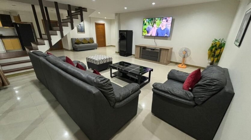 This is a quiet, natural home with casual decor. This home can be used for business. The village is quite and friendly with 24-hour security. It is suitable for a large family vacation. It is a 2-storey house with a large swimming pool where you can relax with your family in a refreshing atmosphere every day.