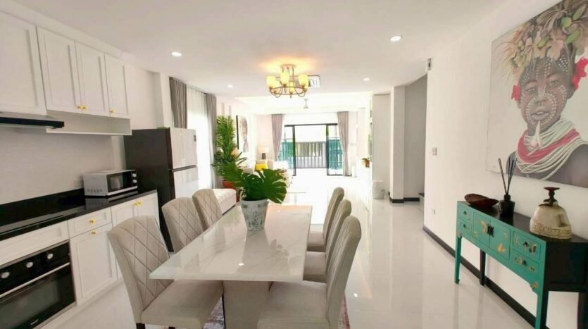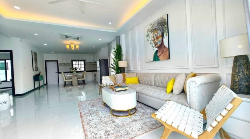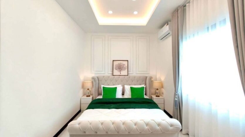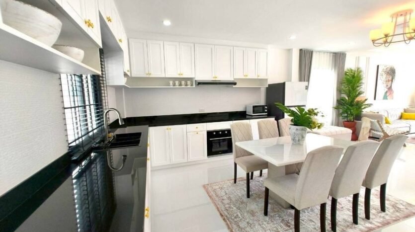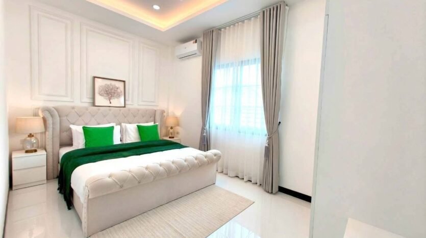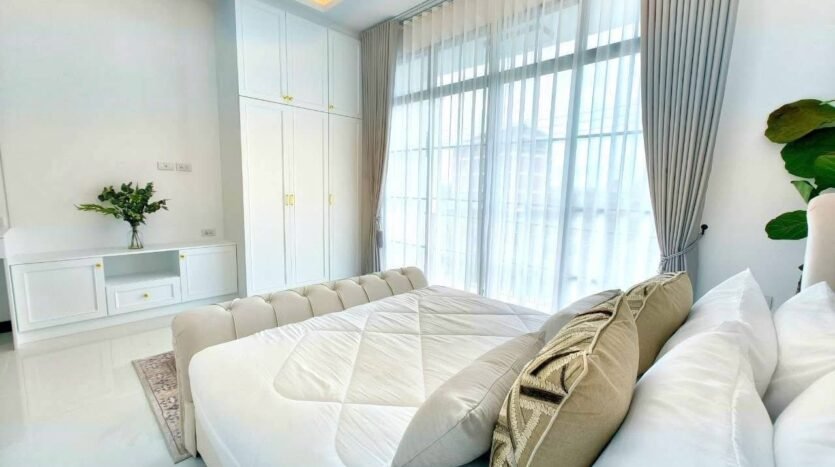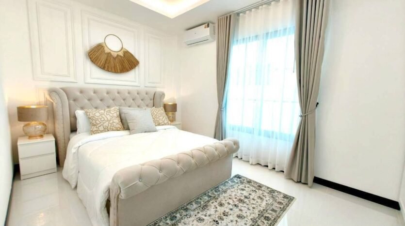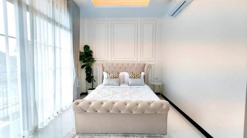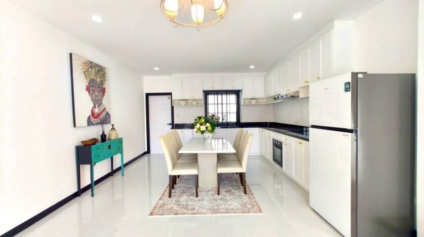 It is a modern style decorated house and it is a quiet village, friendly neighbors, not far from shopping and markets, safety when living here, the village is far from Pattaya about 20 minutes and not far from Bang Saray beach about 15 minutes, convenient to go back and forth.