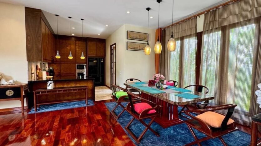 View Talay Marina is a Thabali style village, a large and quiet village in Pattaya. The people who live here are high class and friendly, mostly family and safe with 24 hour security. It is not far from Pattaya, about 10 minutes and close to U-Tapao Airport, only 30 minutes. You can travel to Bangkok via Motorway 7, 5 minutes from the road. This house for living no business.