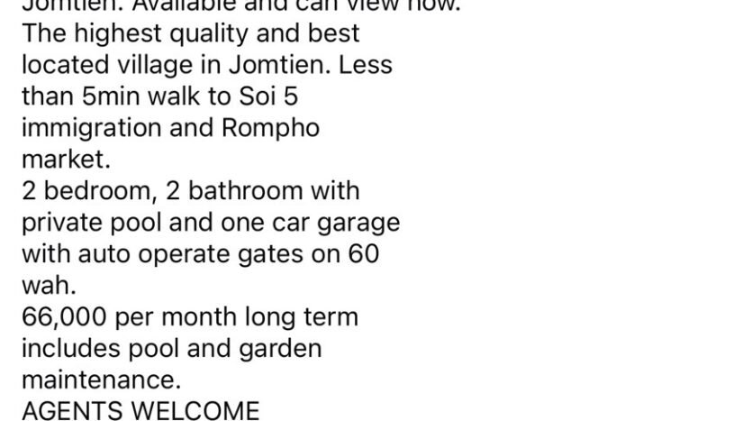 View Talay Villa. The highest quality and best located village in Jomtien. Less than 5min walk to Soi 5 immigration and Rompho market.