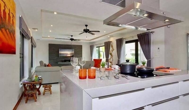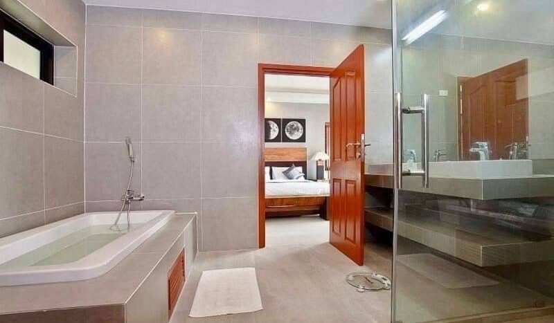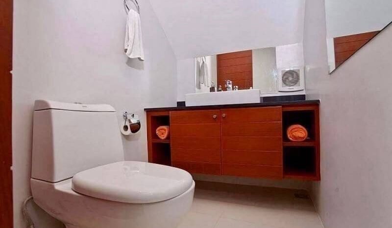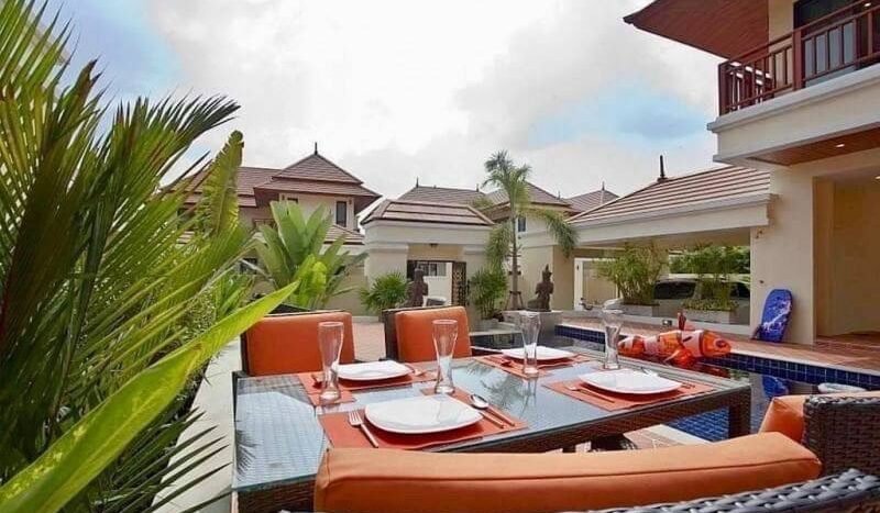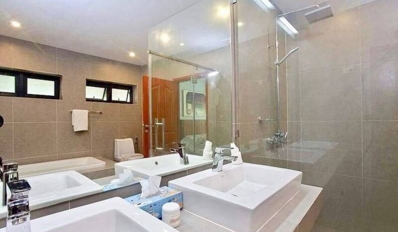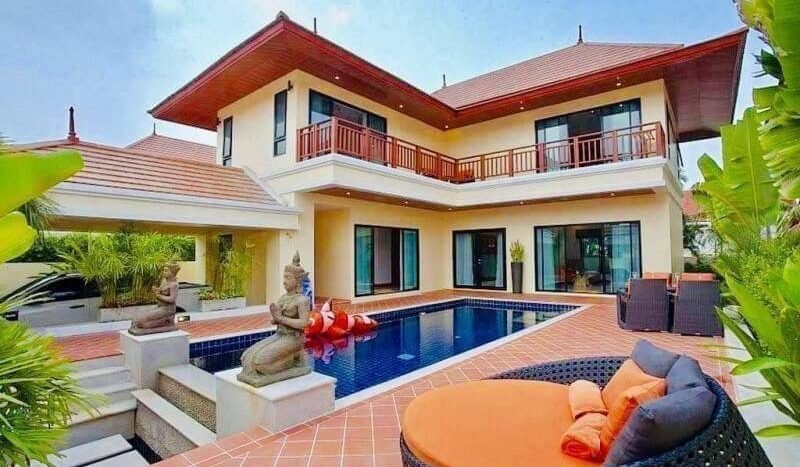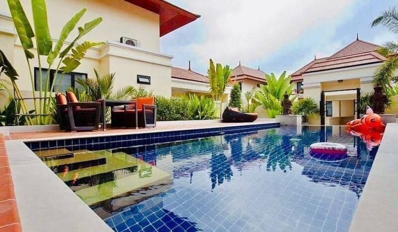 Thai Bali style pool villa near Bang Saray beach, only 10 minutes and close to Sukhumvit Road and the motorway to Bangkok. This village is a quiet and luxurious village. Most of the residents here are families and working people. It is quiet with 24 hour security. It is safe to stay and live. It is convenient to go to Pattaya, only 15 minutes and there are many restaurants and supermarkets in this area. This house is 3 bedrooms 4 bathrooms with private pool.