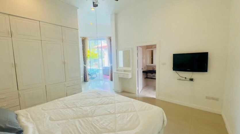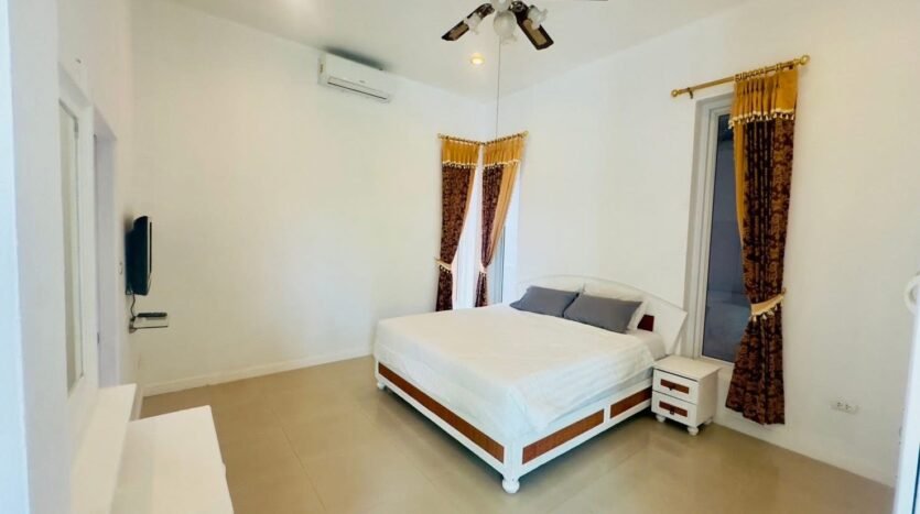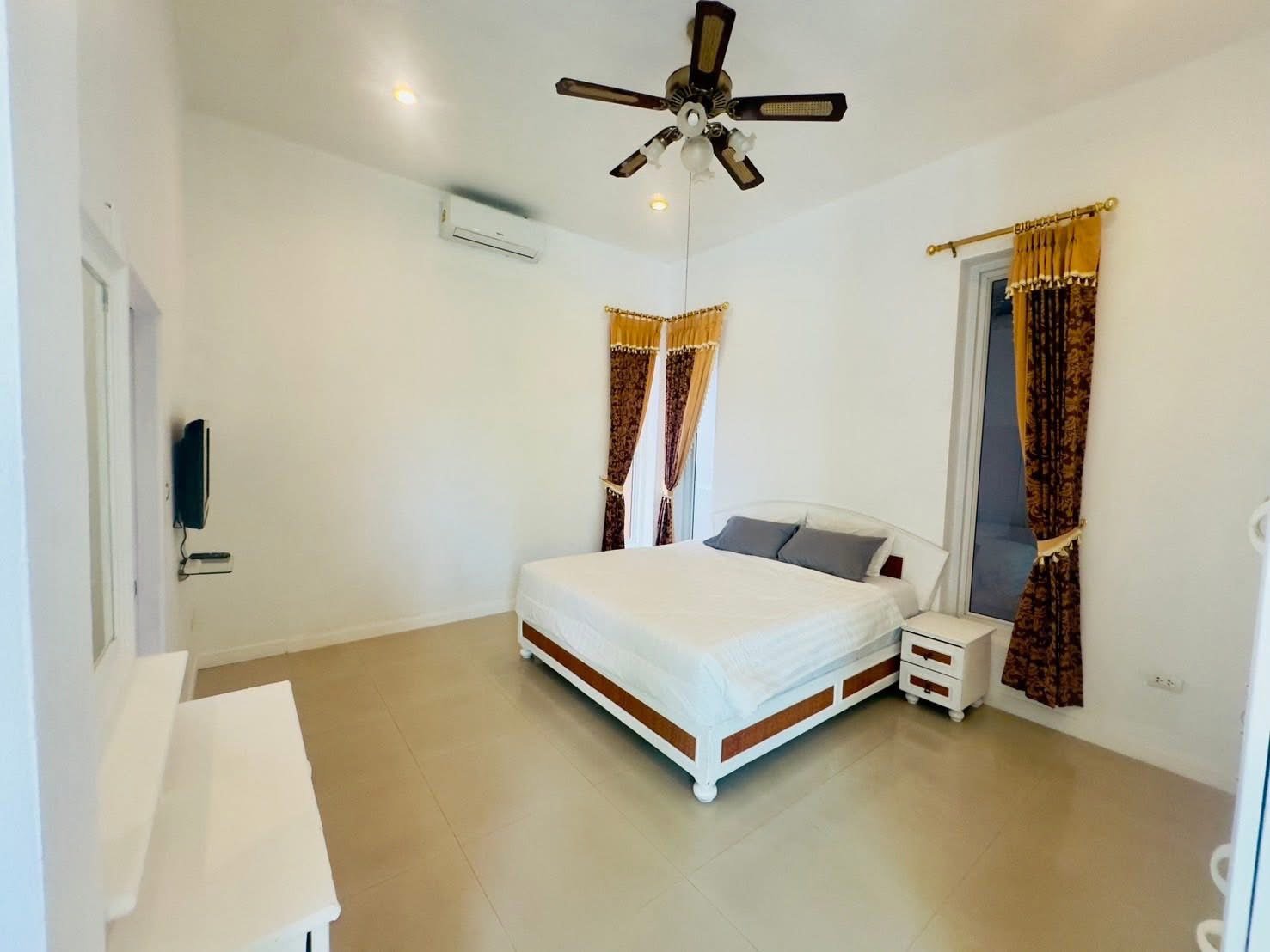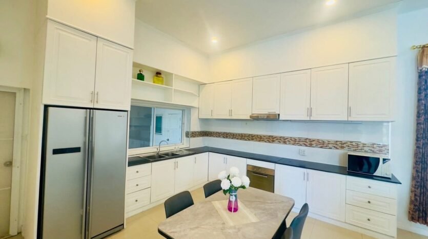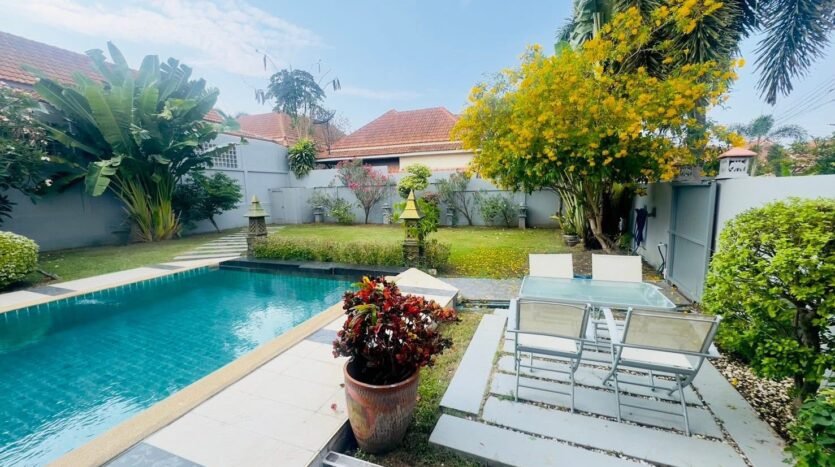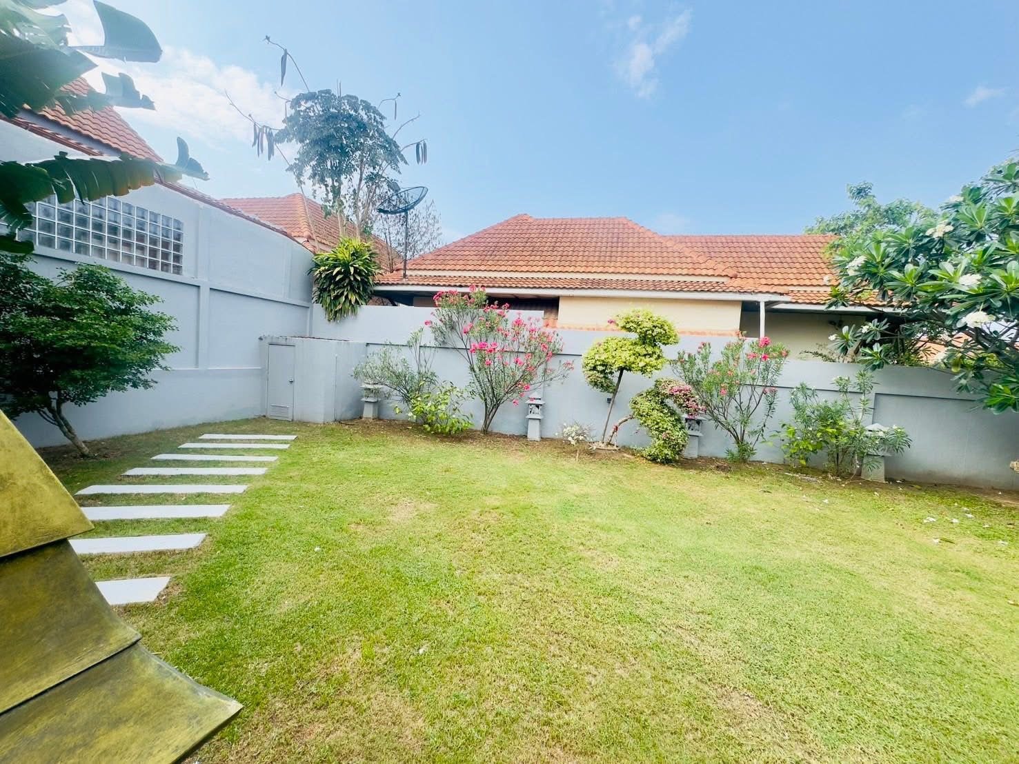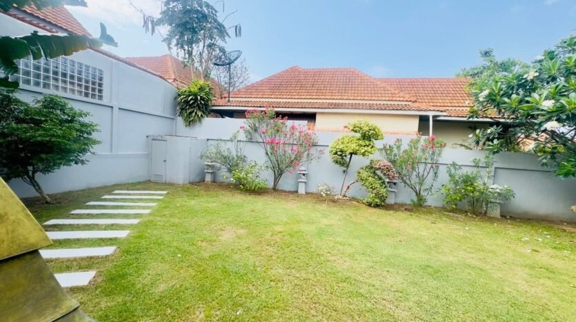 This simply decorated house is surrounded by trees and a spacious yard, perfect for relaxing with your family. The village is also only 15 minutes from Pattaya city center and close to shopping areas such as markets and mini-marts. You won’t be disappointed living here and will feel safe with friendly neighbors.