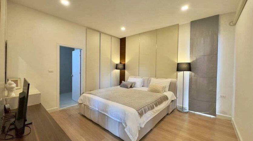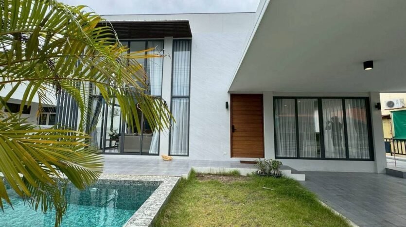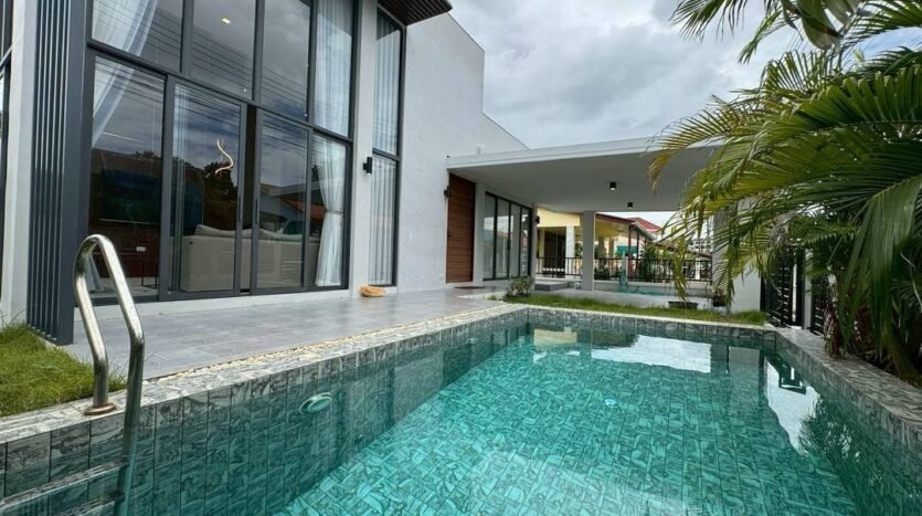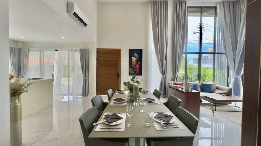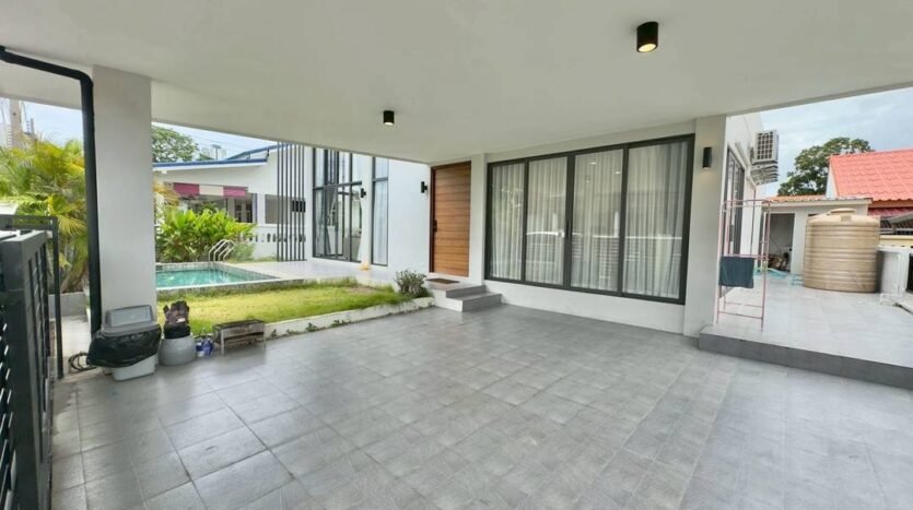 Beautifully decorated modern pool villa in Na Kluea area, not far from shopping and the sea, only 10 minutes and not far from supermarkets, seafood markets and 5 star hotels. Large swimming pool and garden. Modern design high roof house. It is a quiet village suitable for relaxation and living, safe with 24 hour security, only 10 minutes go to hospital, and schools are not far away. Land size 296sqw, Living area 196 sqm. Thai Company Name.