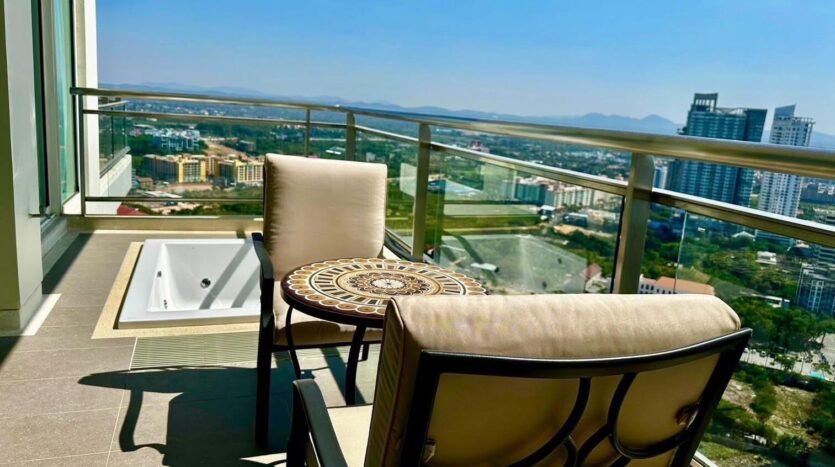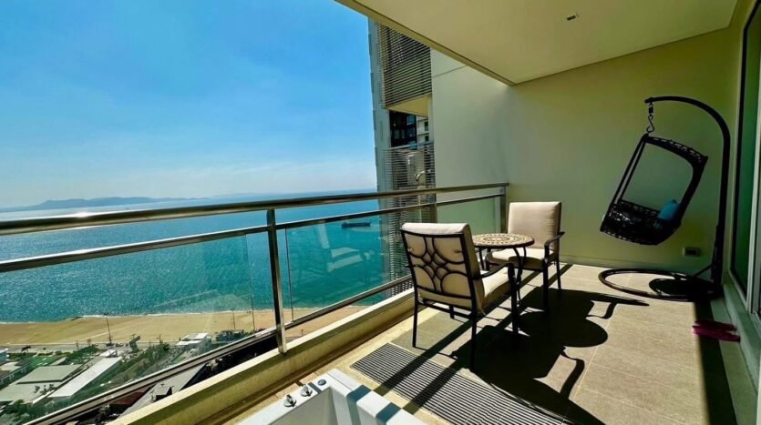 This is another beautifully designed and perfectly designed condo on Jomtien Beach that you shouldn’t miss living in. This condo is quiet and secure 24 hours a day. The interior is elegant and pleasing to the eye, whether you’re staying alone or with a family. This is a great place to stay. It’s spacious and has plenty of space, and a jacuzzi on the balcony. You can enjoy the jacuzzi every day and see the sea view. This 2-bedroom, 2-bathroom unit is on the 28th floor and offers 115 square meters of space. You can do many activities with your family. This is a great place to stay. REFLECTION Condo is a freehold condominium project, comprising of two high-rise residential buildings of 55-storeys and 42-storeys, construction was completed in 2014.