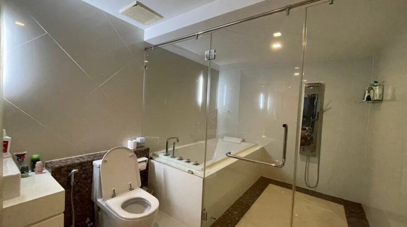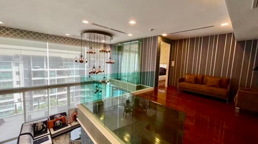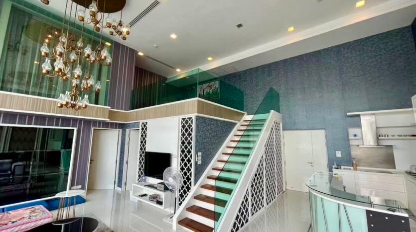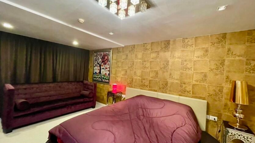 ‘The Sanctuary Wongamat,’ a low-rise condominium just a few steps to Wongamat Beach. This room is a 2-story duplex with a balcony overlooking the sea and Sanctuary of Truth temple everyday, the long balcony is perfect for relaxing and overlooking the swimming pool with 7th floor. This condo is surrounded by trees, providing fresh air every day. The room’s decor is simple and elegant. You can enjoy every day here. It is safe 24 hours with security guards and not far from the sea. It is also not far from shopping mall, or the local market and seafood market. This place is highly recommended and should not be missed as a place to live or relax with your family.