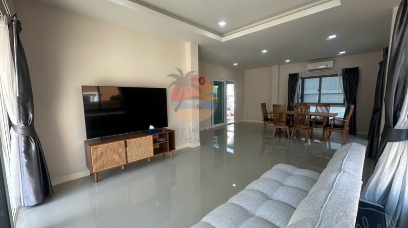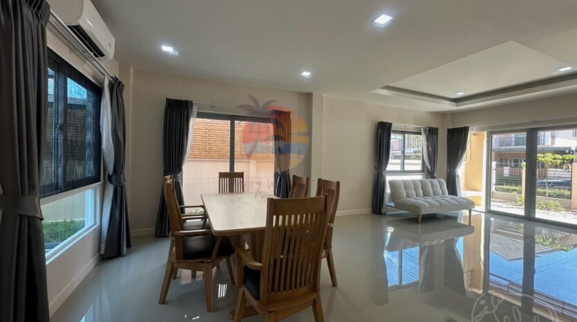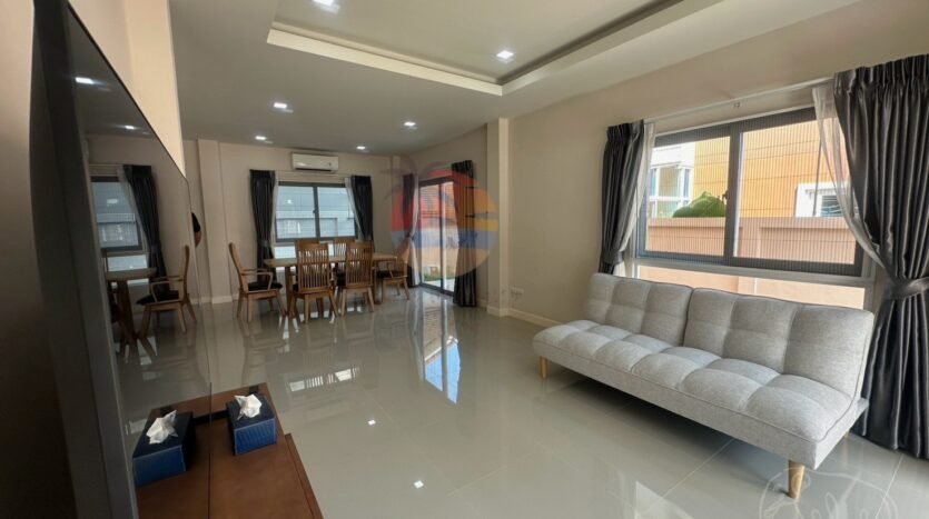 This well-designed two-storey detached house is located in a quiet, private residential project in Sattahip, offering an excellent living environment for families and long-term residents.