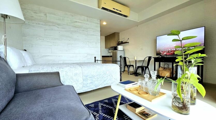 This studio room has a view of Pattaya Bay and Pattaya View. It is a room with a very beautiful view that you do not want to miss. It is suitable for relaxing on a relaxing day for everyone. The condo is in a great location, located on the way up to Pratumnak Hill. There is a large swimming pool with a slide and a viewpoint on the building that can see the whole city of Pattaya. This room is in a Thai name. It is a studio room of 27 square meters. The decoration is in a chic style. Unixx South Pattaya, a high-rise condominium on an exclusive location near Pratumnak Hill, was completed in 2015 with 1,207 residential units, allowing you to admire dramatic scenery from Bali Hai Cape to Pattaya Beach. Located in the heart of Pattaya, near walking street and Pattaya Beach also Jomtien Beach.