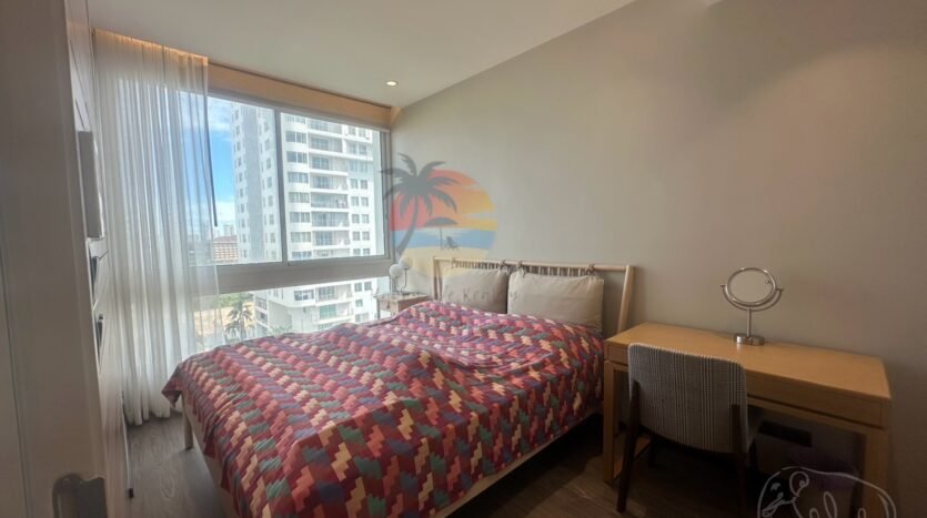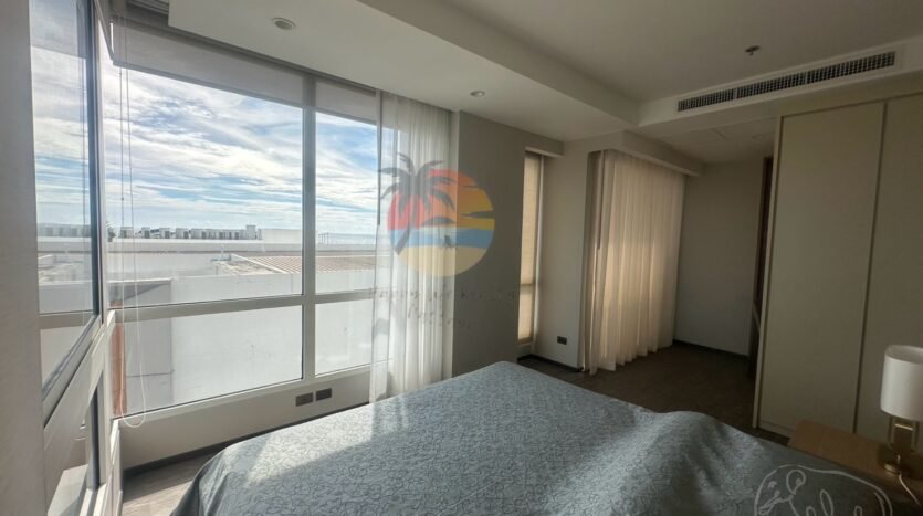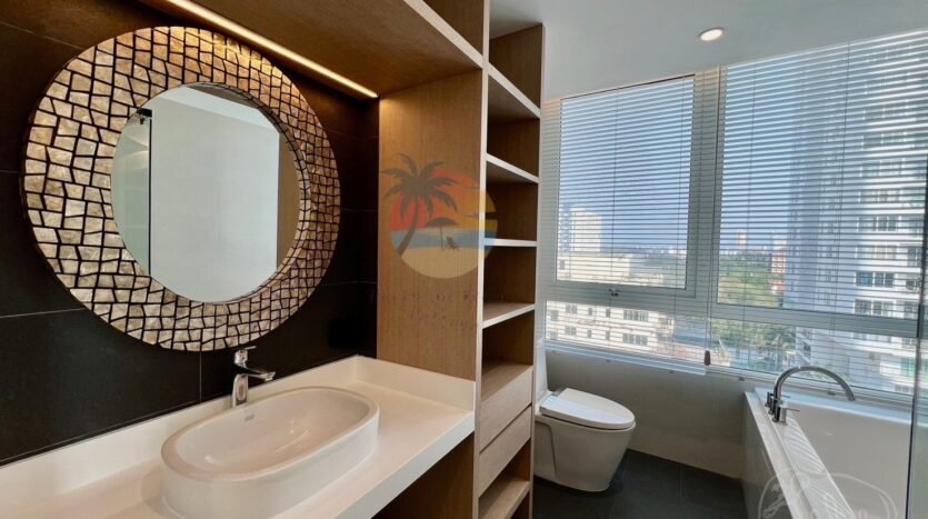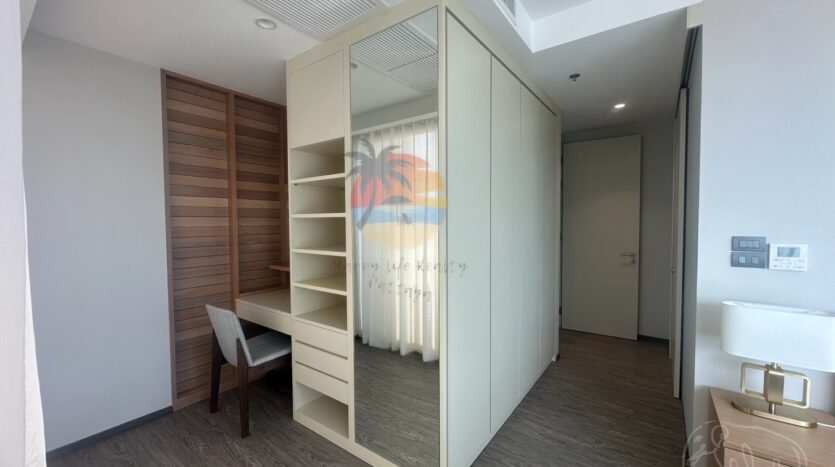 This is a luxury condo in Na Jomtien area. Just a few minutes’ walk to the sea, there are restaurants and a swimming pool next to the sea. It is convenient to relax and safe to live 24 hours with security. It is only 15 minutes from Pattaya city and there are many restaurants nearby. If you want peace and quiet, this condo is the best. This room is decorated in a simple and elegant style. The furniture is all new. It is suitable for families or residents. There is a work room for reception. If interested, you can contact us. This room has 3 bedrooms, 3 bathrooms, on the 8th floor, available for sale and rent. It can see sea views and city views. The room size is 121 square meters.
